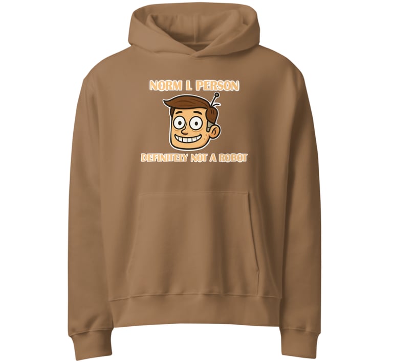 At the center of the brand is Norm L. Person — a character who looks human, acts human, and insists (often unnecessarily) that he is definitely not a robot. Norm isn’t a mascot or a superhero. He’s more like a mirror: a reminder that trying to appear “normal” is something we’re all doing, whether we admit it or not.